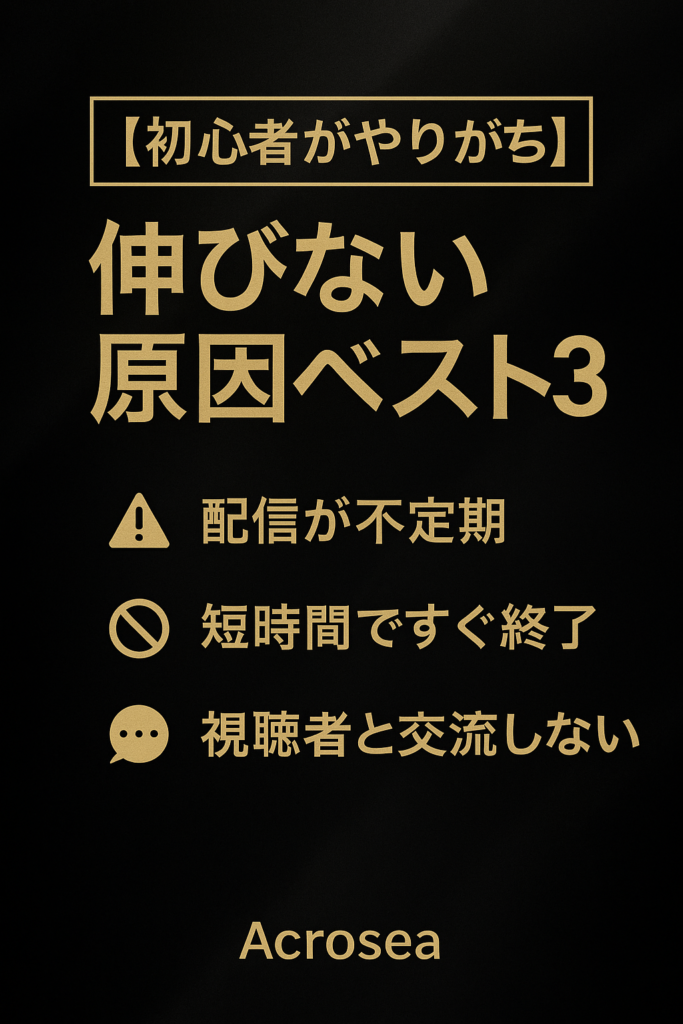 伸びない人には、明確な理由があります。 ①ただ雑談しているだけ初見は止まりません。必ず企画が必要。 ② 自分の強みが分かっていない魅力を言語化するとファン化の速度が2倍以上に。 ③改善できない環境にいる自分で分析するのは難しい。 Acroseaでは、"伸... -