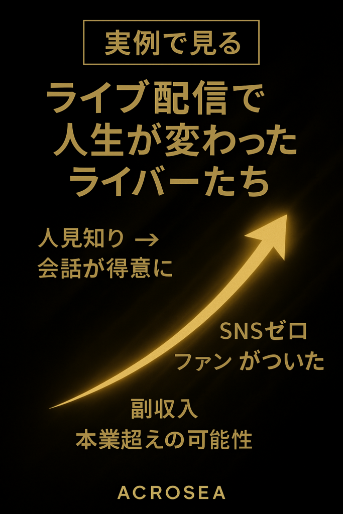 Acrosea所属ライバーの多くが配を通じて人生を変えています。 ・人見知り → 会話が得意に・SNSゼロ → ファンができた・副収入 → 本業を超える収益へ・コンプレックス → 自信に変化 ライブ配は「自分の価値に気づける場所」。 あなたにも同じ可能性がありま... -
